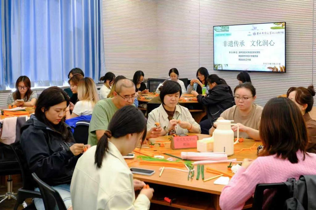 9月24日,语言文化学院联合民盟吉林财经大学委员会、民盟文创工作组共同开展“非遗传承 文化润心”非遗文化进校园主题活动,以沉浸式体验将非遗技艺的“匠心之美”与高校育人“培根铸魂”的核心目标深度融合。
