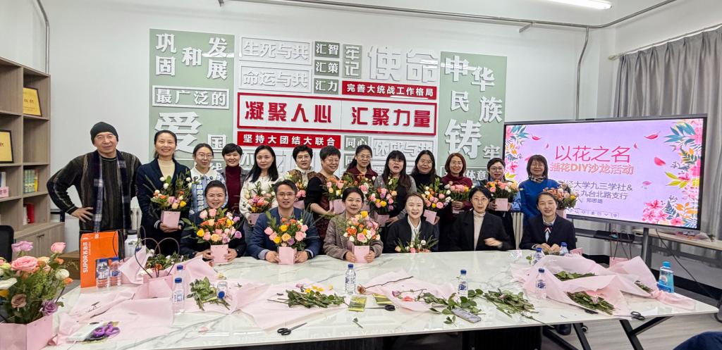 11月6日中午,九三学社吉林财经大学委员会携手邮储银行九台北路支行,在学校同心家园成功举办了“共享智慧·共享生活”系列之“以花之名”主题插花联谊活动。来自九三学社、民进、民盟等多个民主党派,以及无党派人士、留联会、知联会、侨联的二十余位代表欢聚一堂,共同度过了一段智慧与雅趣交相辉映的美好午间时光。
